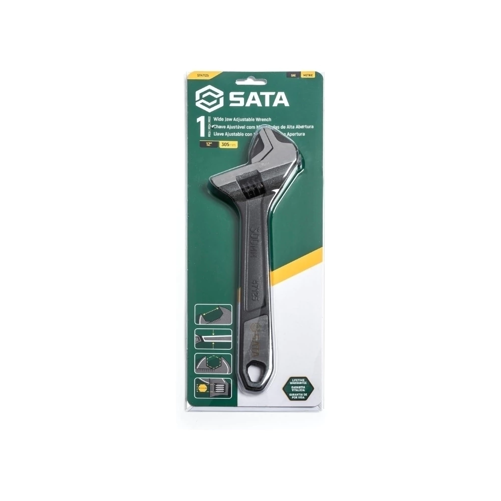 A Chave Ajustável Wide Jaw 12" ST47125 da SATA é a solução ideal para aplicações que exigem maior capacidade de abertura sem abrir mão da precisão. Com uma mandíbula até 50% mais larga que os modelos convencionais, ela permite o aperto e desaperto de parafusos e porcas de grandes dimensões com total segurança e conforto. Produzida em aço cromo-vanádio com acabamento oxidado, oferece resistência superior à corrosão e longa vida útil, sendo perfeita para ambientes exigentes e aplicações industriais.