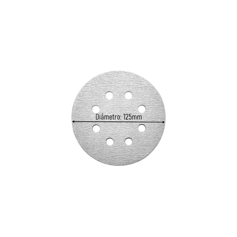 Diâmetro de 125mm: Compatível com lixadeiras roto-orbitais desse tamanho.
