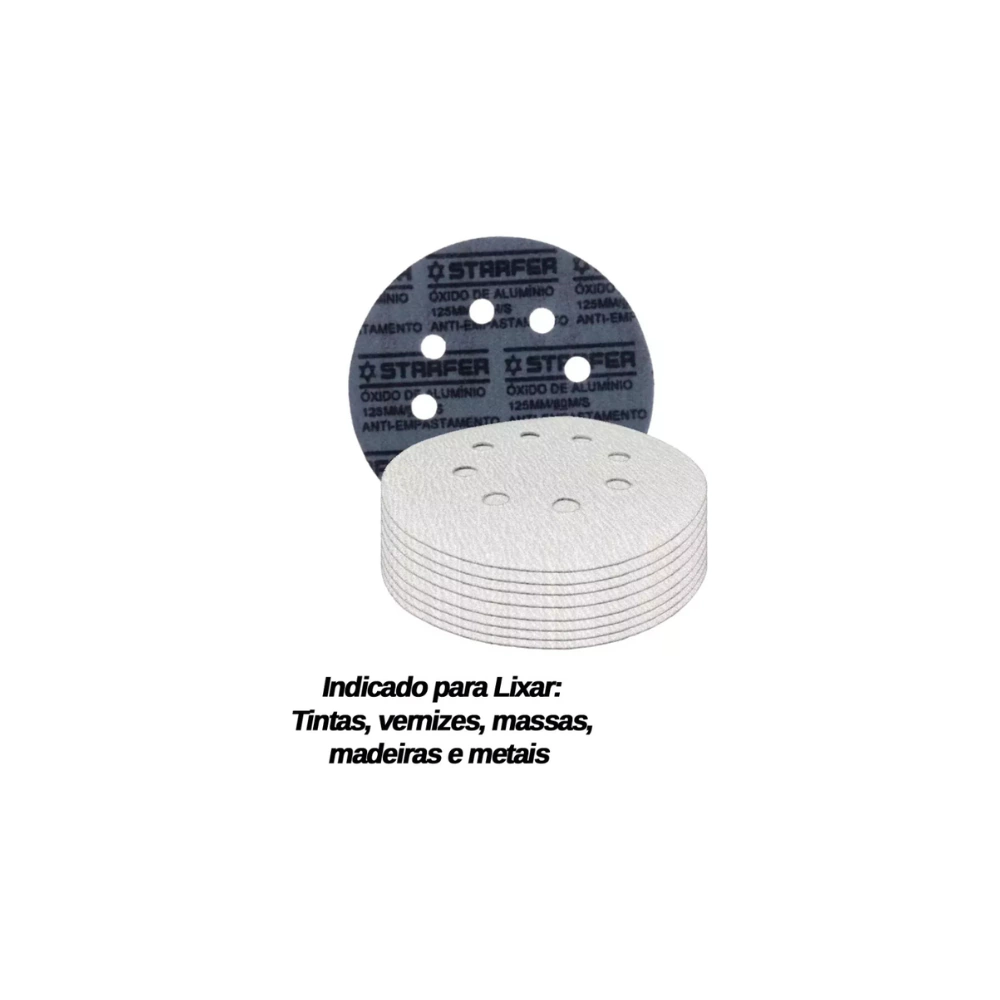 Kit com 10 Discos de Lixa Velcro Branco 125mm 1000 - Starfer