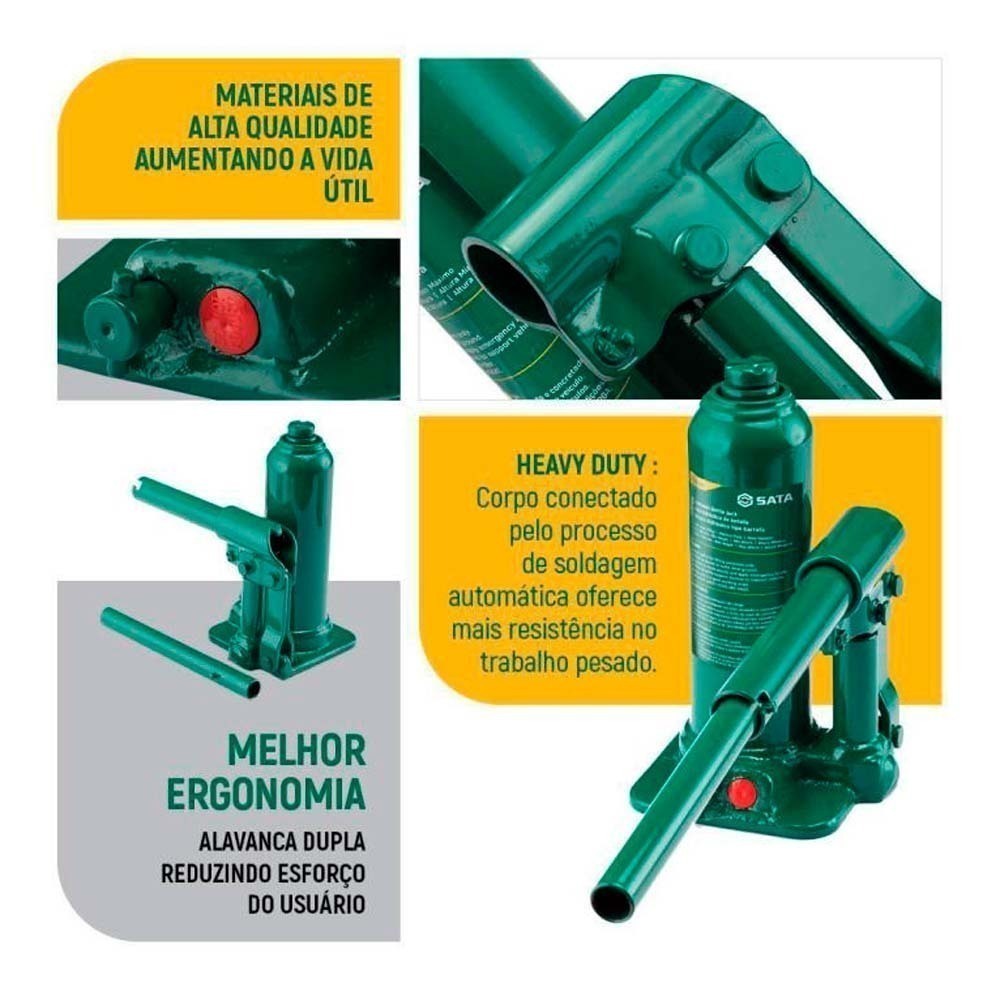 Macaco Hidráulico Tipo Garrafa 2 Toneladas para Elevação Segura e Estável – ST97801ASC – SATA
