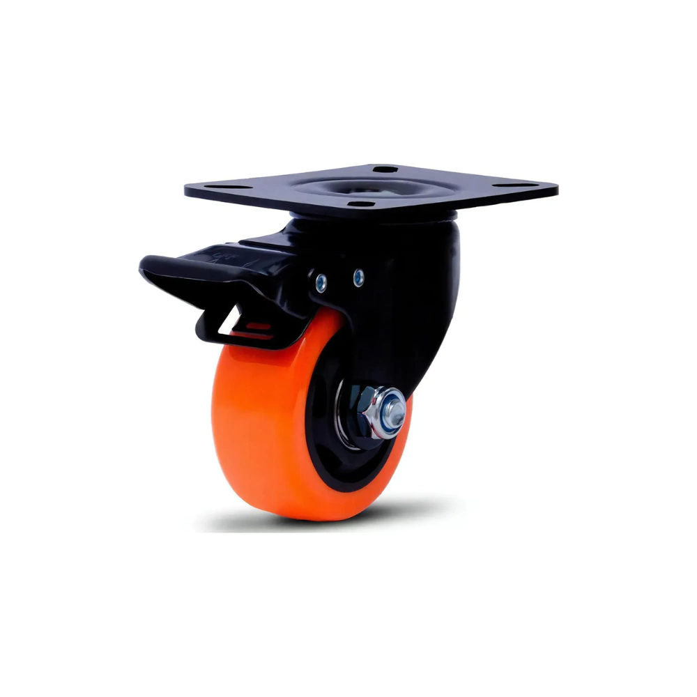 Rodízio de PVC Laranja 2" Giratório com Freio Placa - A09120-GF - Ajax